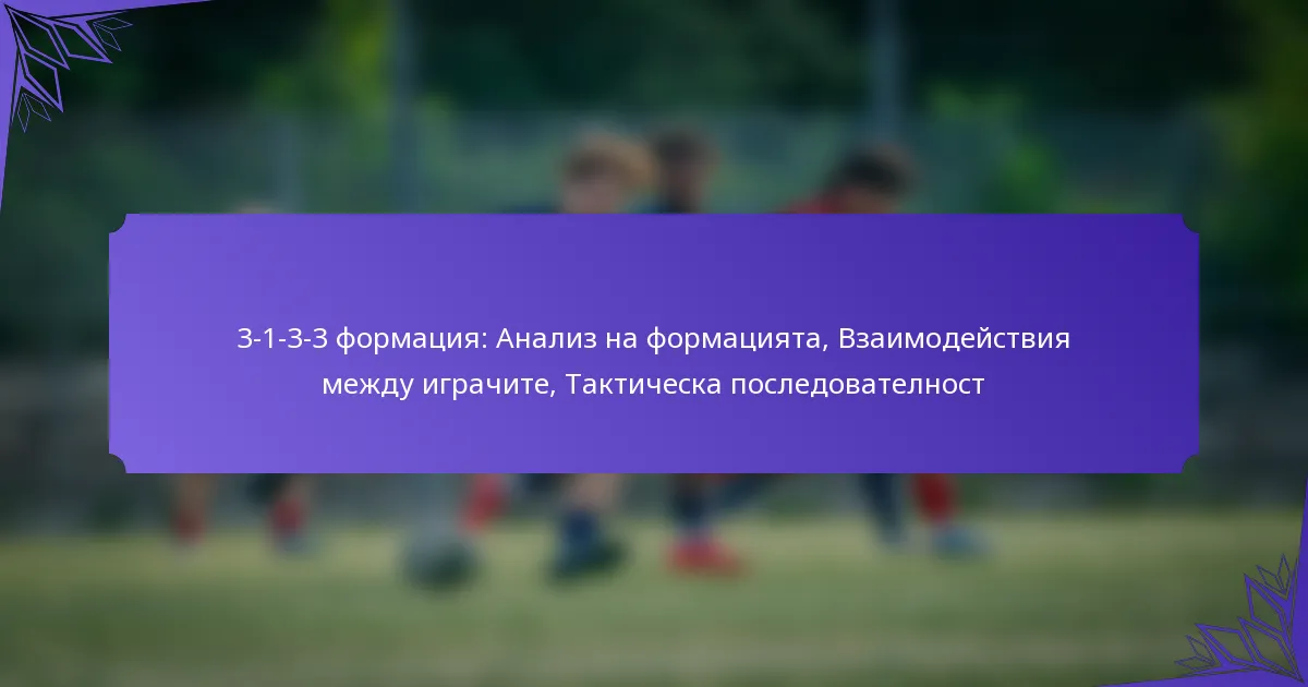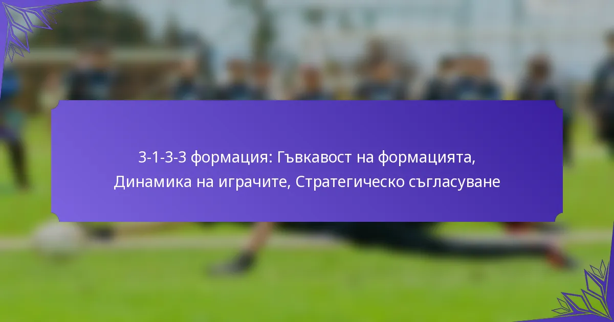 Формата 3-1-3-3 предлага стратегически баланс между атака и защита, позволявайки на отборите да упражняват контрол в средата на терена, докато предлагат разнообразни опции за нападение. Тя изисква високи нива на тактическа осведоменост и координация между играчите, тъй като всеки член трябва да разбира своята роля и да се адаптира към динамиката на играта за оптимално представяне.