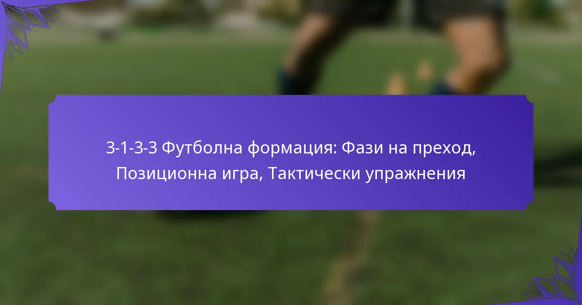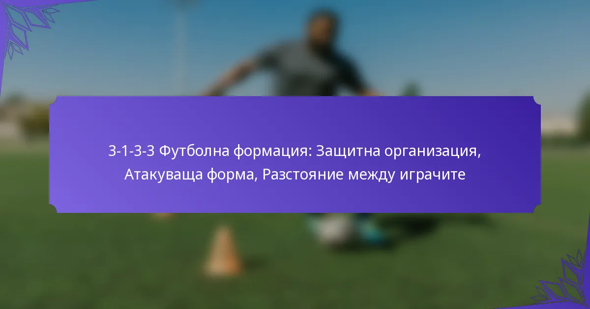 Футболната формация 3-1-3-3 е тактическа схема, която балансира атакуващата мощ с дефанзивна стабилност, включваща трима защитници, един дефанзивен халф, трима халфове и трима нападатели. Тази универсална формация позволява на отборите да поддържат притежание на топката, докато оказват натиск върху противниците, което я прави ефективна в различни игрови ситуации. Чрез използването на тази структура, отборите могат да създават атакуващи предимства, като същевременно осигуряват компактна дефанзивна форма, адаптирайки се безпроблемно към различни тактически изисквания.